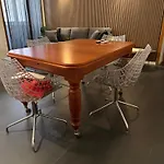 يتميز التصميم الداخلي بنوافذ عازلة للصوت ومجهز بتلفزيون بشاشة مسطحة مع قنوات فضائية وجهاز التلفزيون، بالإضافة إلى وسائل الراحة الأخرى مثل ضاغط سراويل ومرافق لكي الملابس والمكواة ولوح الكيّ. كما تمّ تجهيز الشقة بالأريكة ومكتب العمل. تم تجهيز الحمام بالبيديت والمرحاض المنفصل والدوش، بالإضافة إلى مجفف الشعر والمناشف.